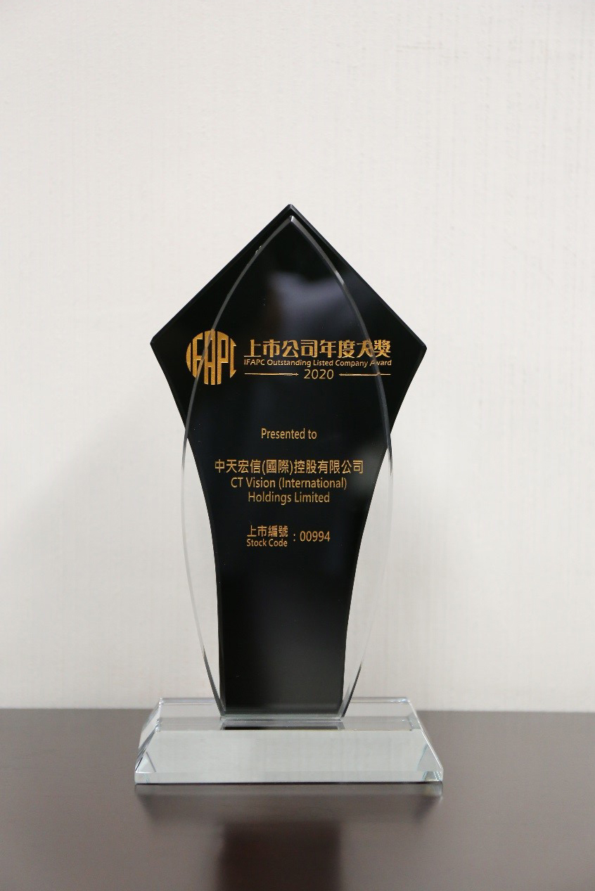 On December 8, 2020, CT Vision has been awarded the "Outstanding Listed Companies Award 2020" in the selection of “The Hong Kong Institute of Financial Analysts and Professional Commentators Limited- Annual Outstanding Listed Companies" held by The Hong Kong Institute of Financial Analysts and Professional Commentators Limited and Metro Finance. The award is based on the performance of all products or services listed in Hong Kong in the past year. It is selected by the professional jury of The Hong Kong Institute of Financial Analysts and Professional Commentators Limited. It aims to praise the companies with outstanding performance or potential, and to establish a set of objective indicators for the majority of investors for reference.
